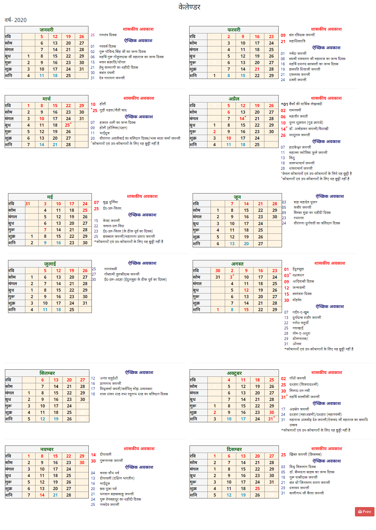 Madhya Pradesh (MP) Calendar contains Hindu festivals, important days, and fasting lists.